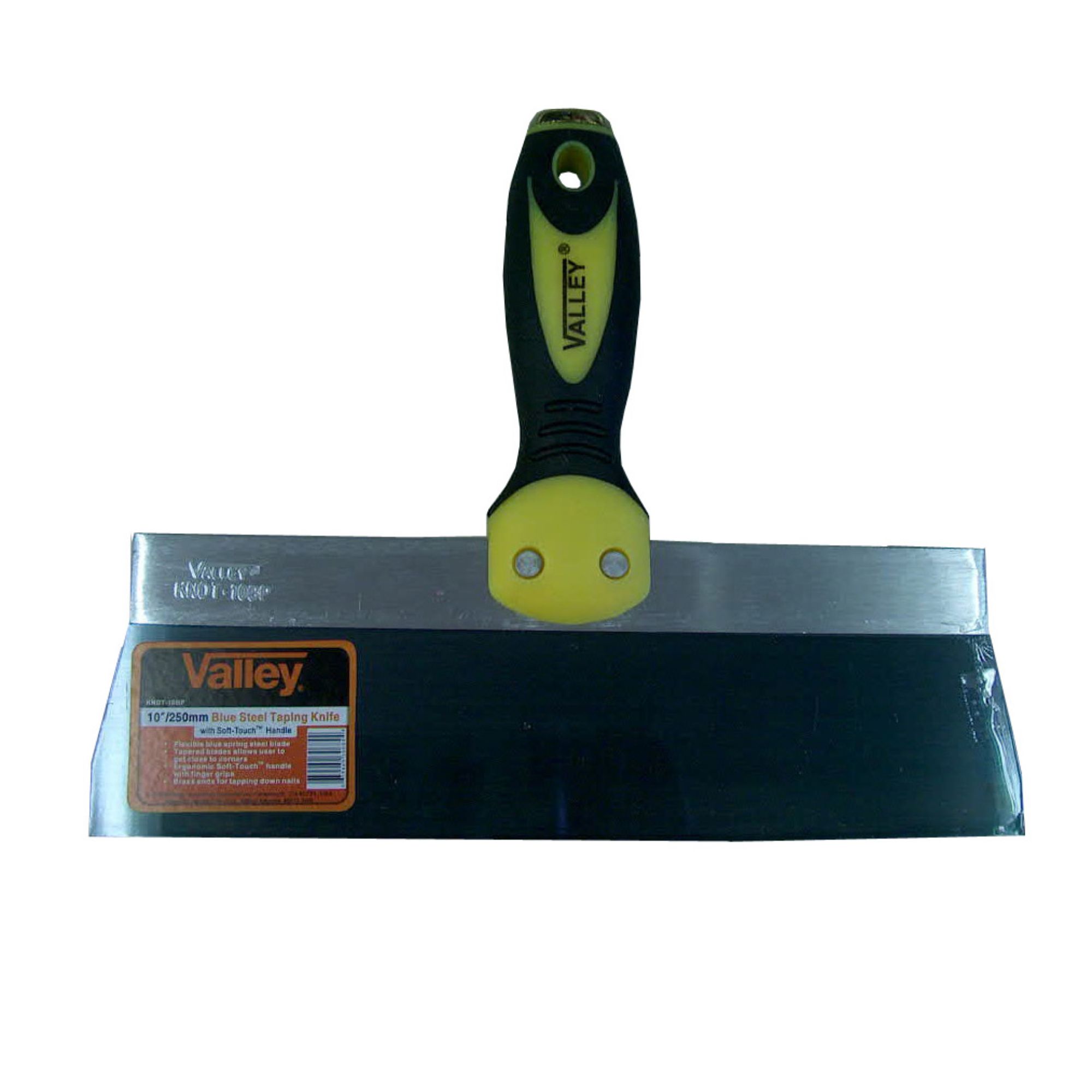 Flexible blue spring steel blade[linebreak]Tapered blades allows user to get close to corners[linebreak]Ergonomic Soft-Touch™ handle with finger grips[linebreak]Brass ends for tapping down nails[linebreak]Grip Length: 5-7/8″