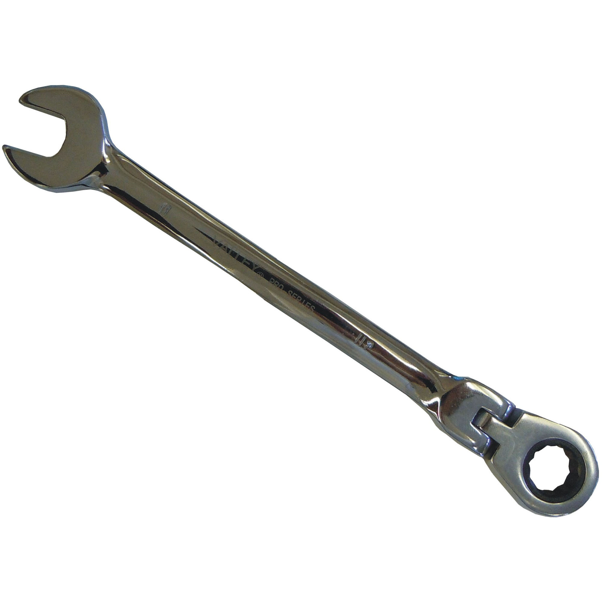 Drop forged and heat treated to ANSI specifications[linebreak]Chrome vanadium steel[linebreak]Mirror polished finish[linebreak]Flex head for easy access to hard to reach places[linebreak]72T ratcheting box end works with only a 5 movement to speed up work