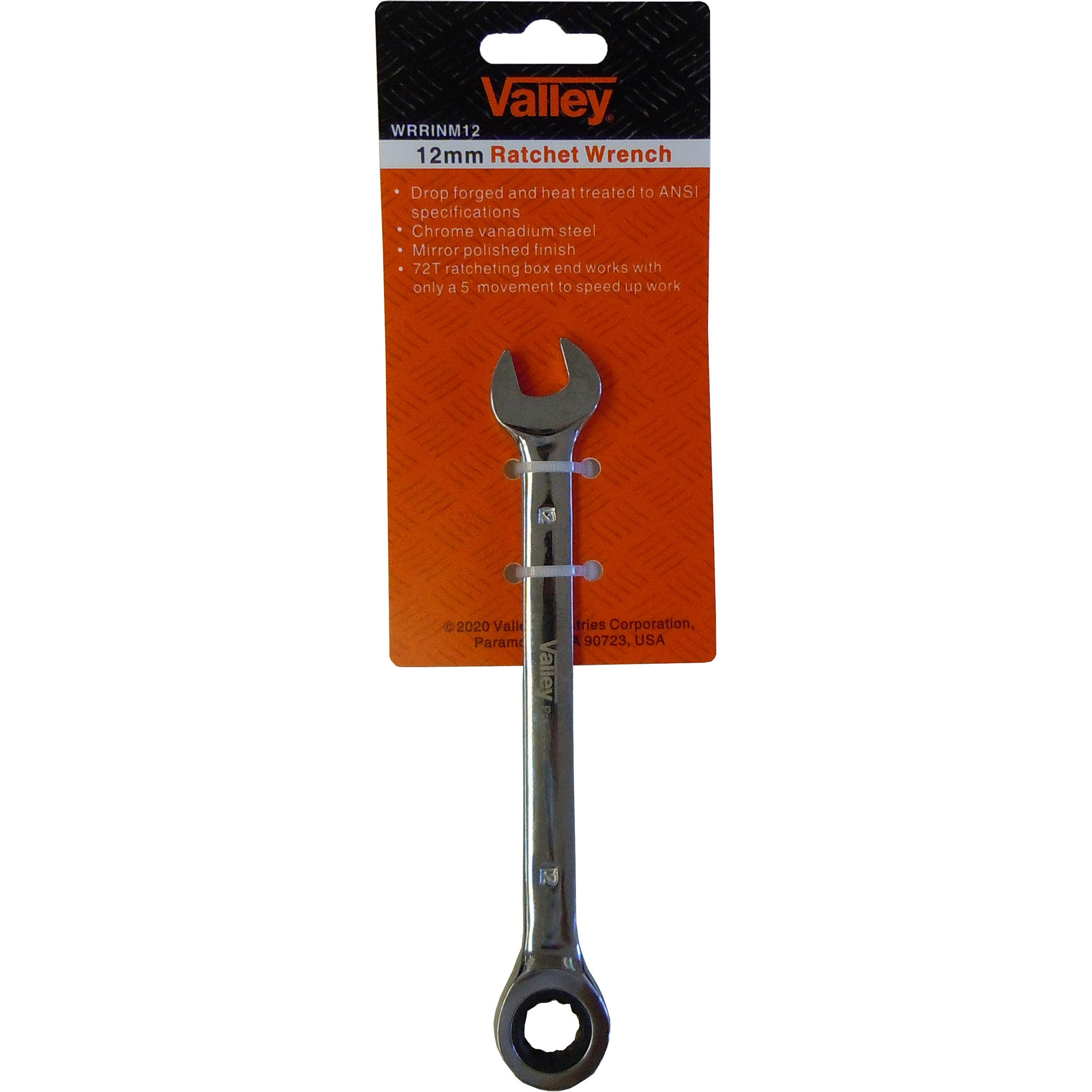 Drop forged and heat treated to ANSI specifications[linebreak]Chrome Vanadium Steel[linebreak]Mirror polished finish[linebreak]72T ratcheting box end works with only a 5 movement to speed up work