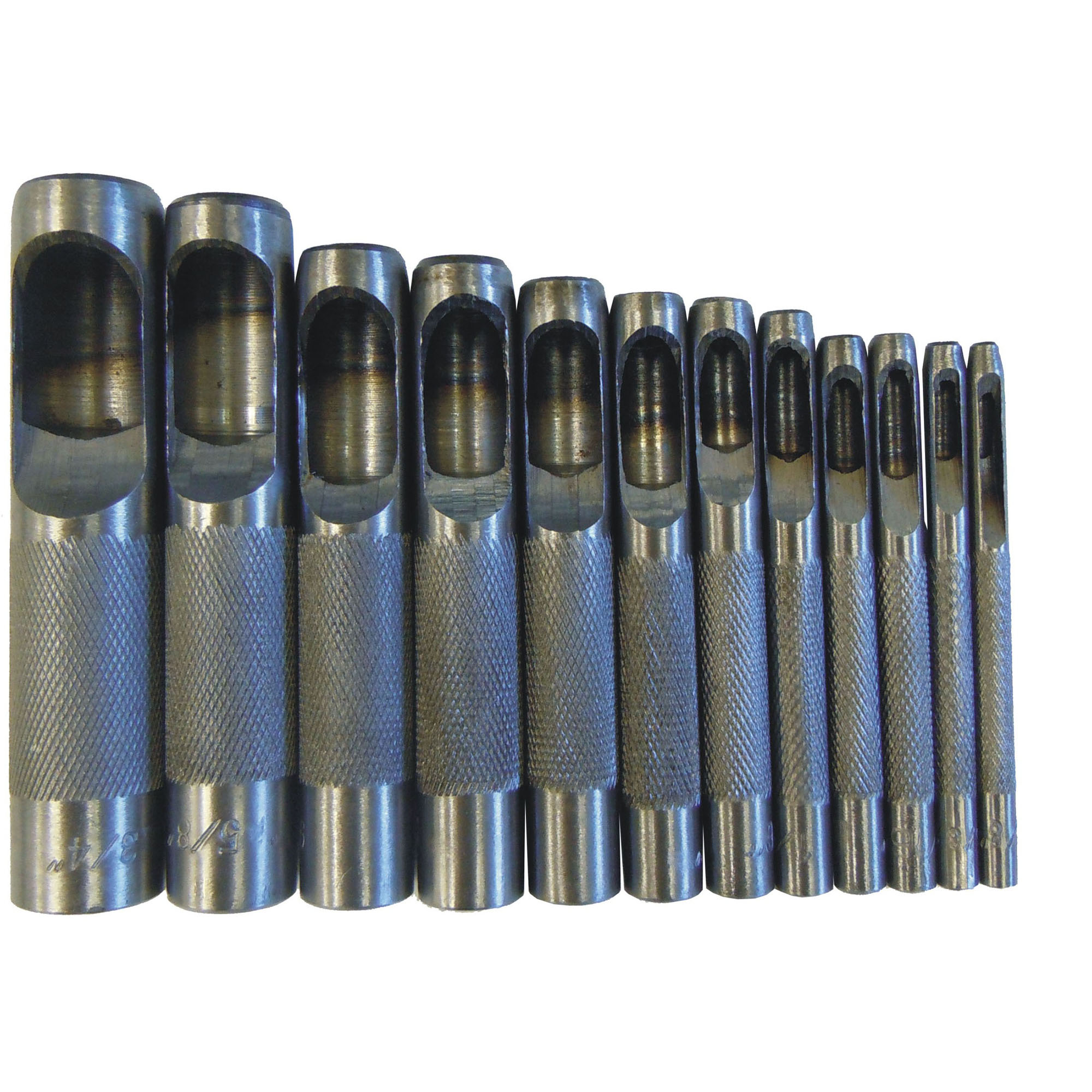Punch sizes: 1/8″(3.1mm), 5/32″(4mm), 3/16″(5mm), 7/32″(5.5mm), 1/4″(6.3mm), 5/16″(7.9mm), 3/8″(10mm), 7/16″(11.1mm), 1/2″(12.7mm), 9/16″(14.2mm), 5/8″(15.8mm), 3/4″(19mm)[linebreak]
