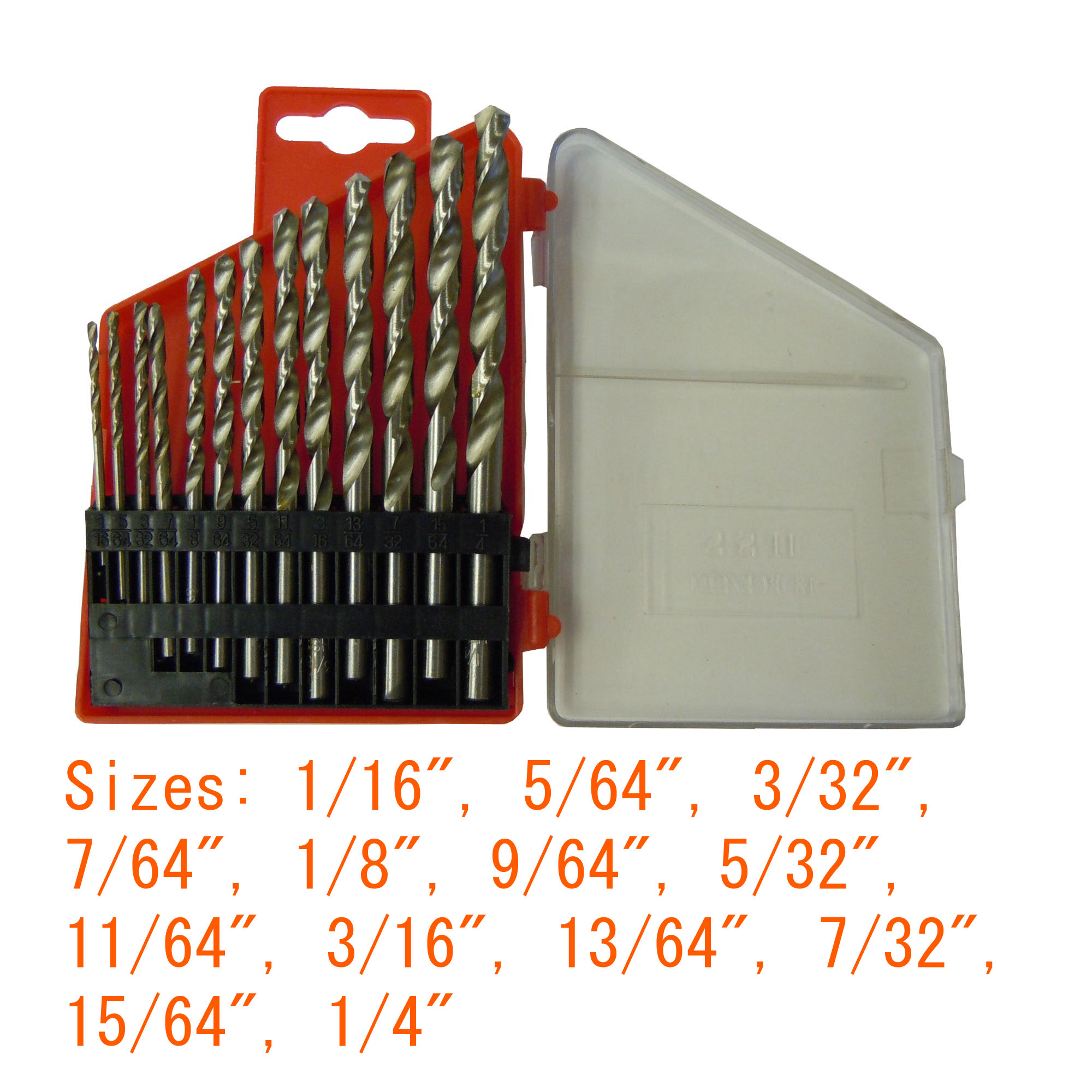 Sizes: 1/16″, 5/64″, 3/32″, 7/64″, 1/8″, 9/64″, 5/32″, 11/64″, 3/16″, 13/64″, 7/32″, 15/64″, 1/4″[linebreak]Made from High Speed Steel[linebreak]Highly polished finish[linebreak]Industrial quality[linebreak]PVC drill index box included