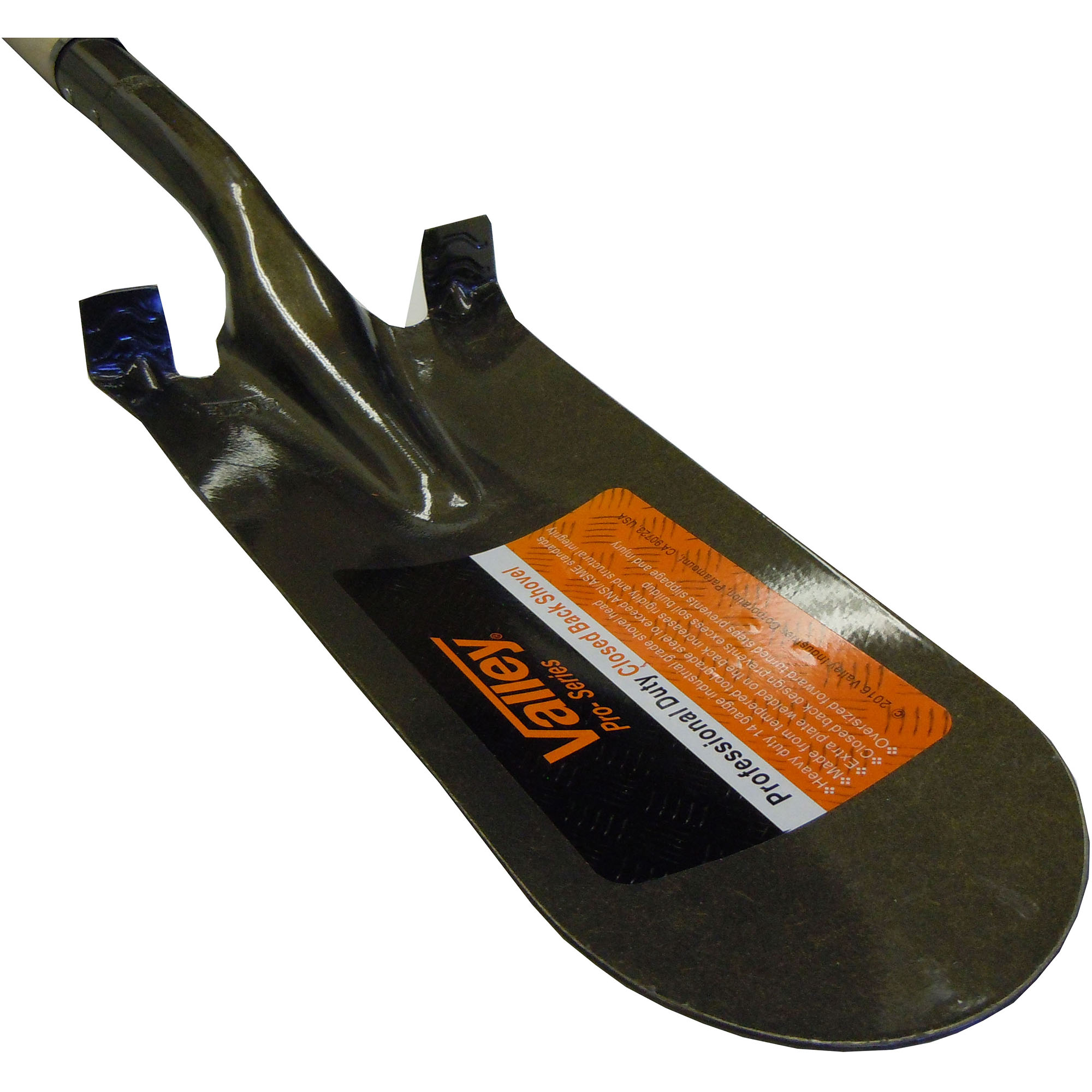 Heavy duty 14 gauge industrial grade shovel head[linebreak]Made from tempered tool grade steel to exceed ANSI/ASME standards[linebreak]Extra plate welded on the back increases rigidity and structural integrity[linebreak]Closed back design prevents excess soil buildup[linebreak]Oversized toward turned steps prevents slippage and injury