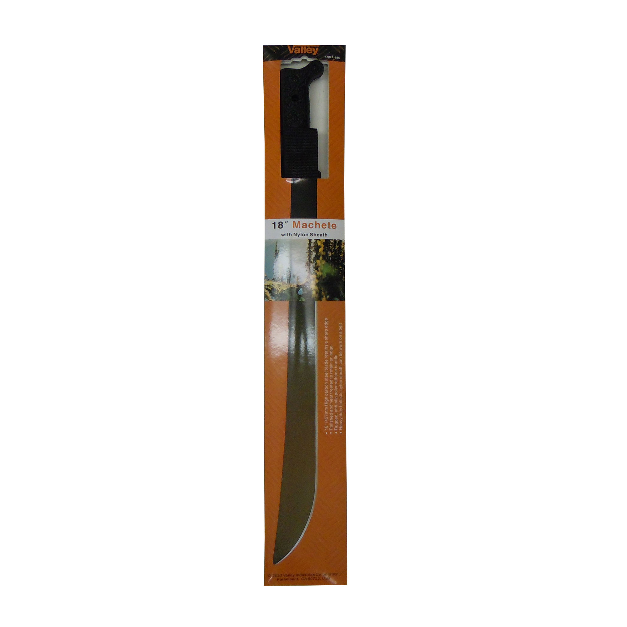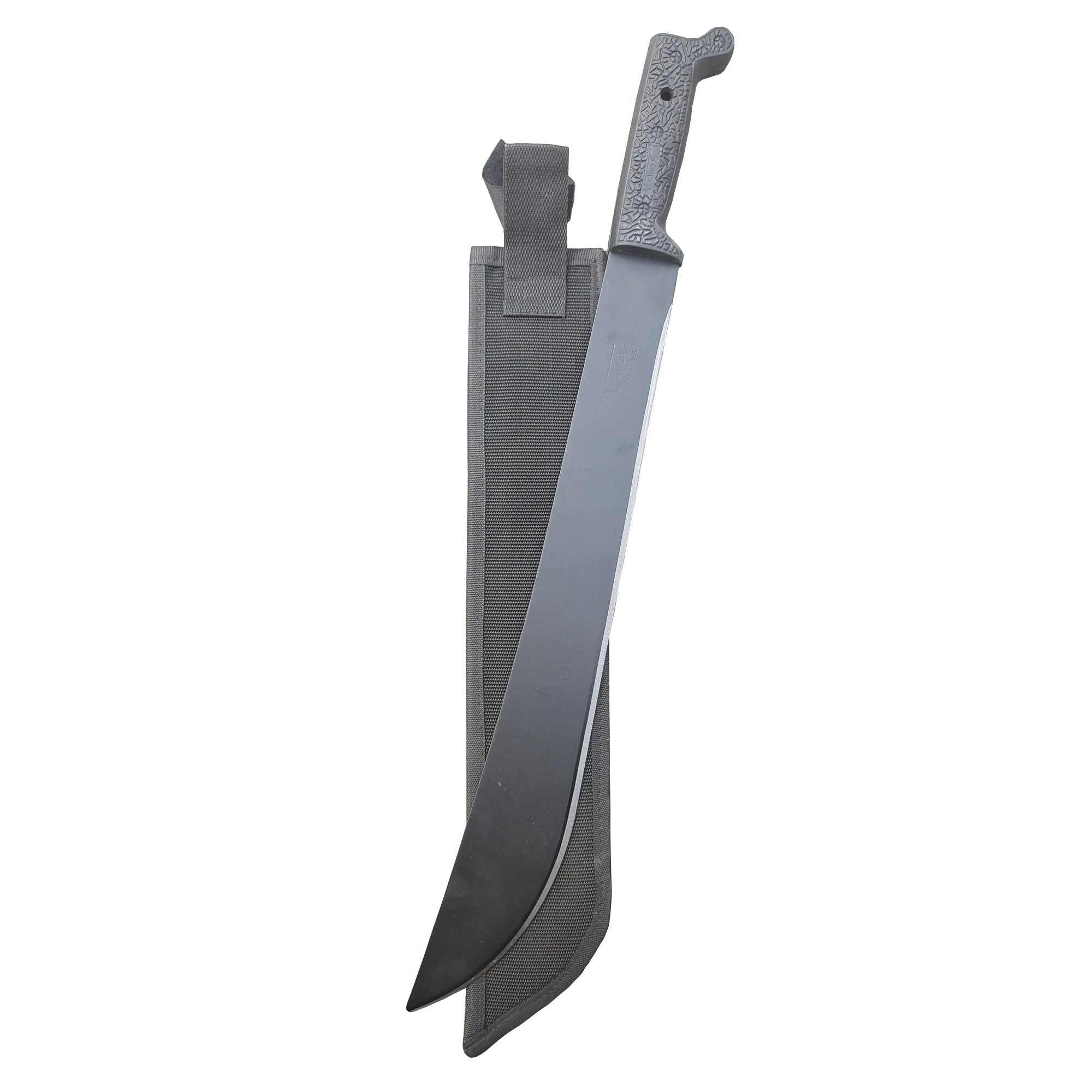 18″ / 457mm Hign carbon steel blade retains a sharp edge[linebreak]Polished and heat treated to retain an edge[linebreak]Rugged, anti-slip polyurethane handle[linebreak]Heavy duty ballistic nylon sheath can be worn on a belt