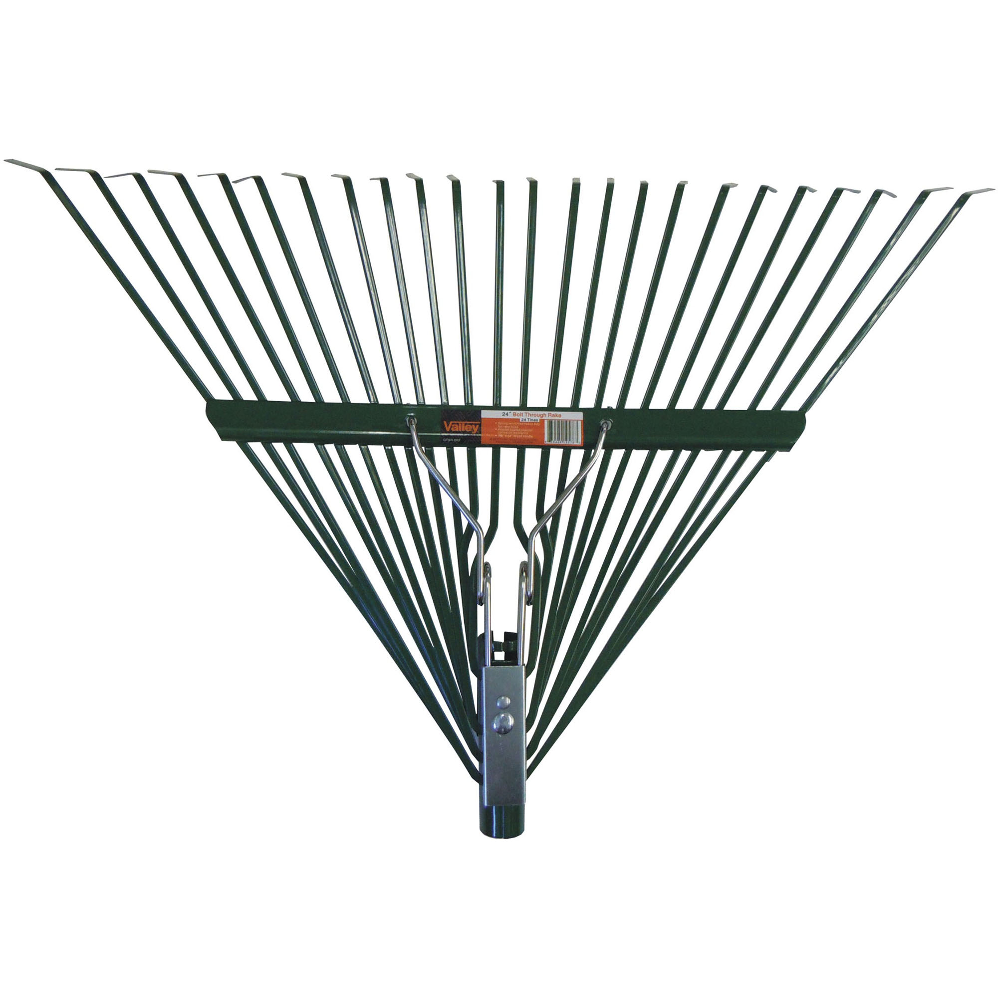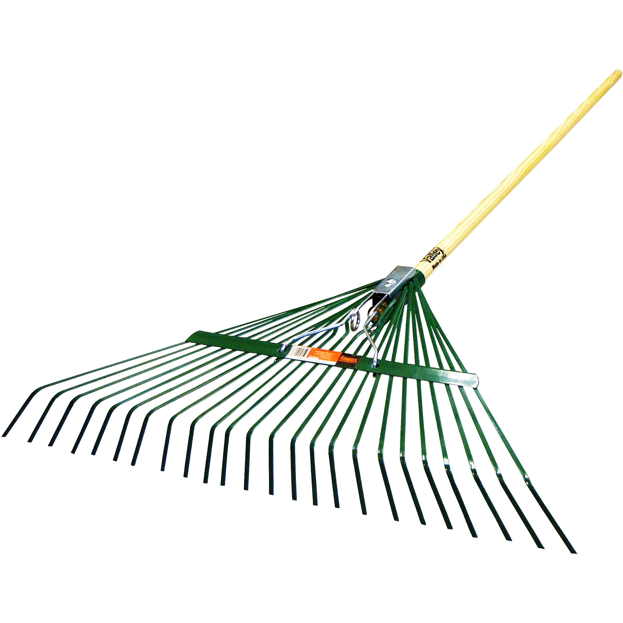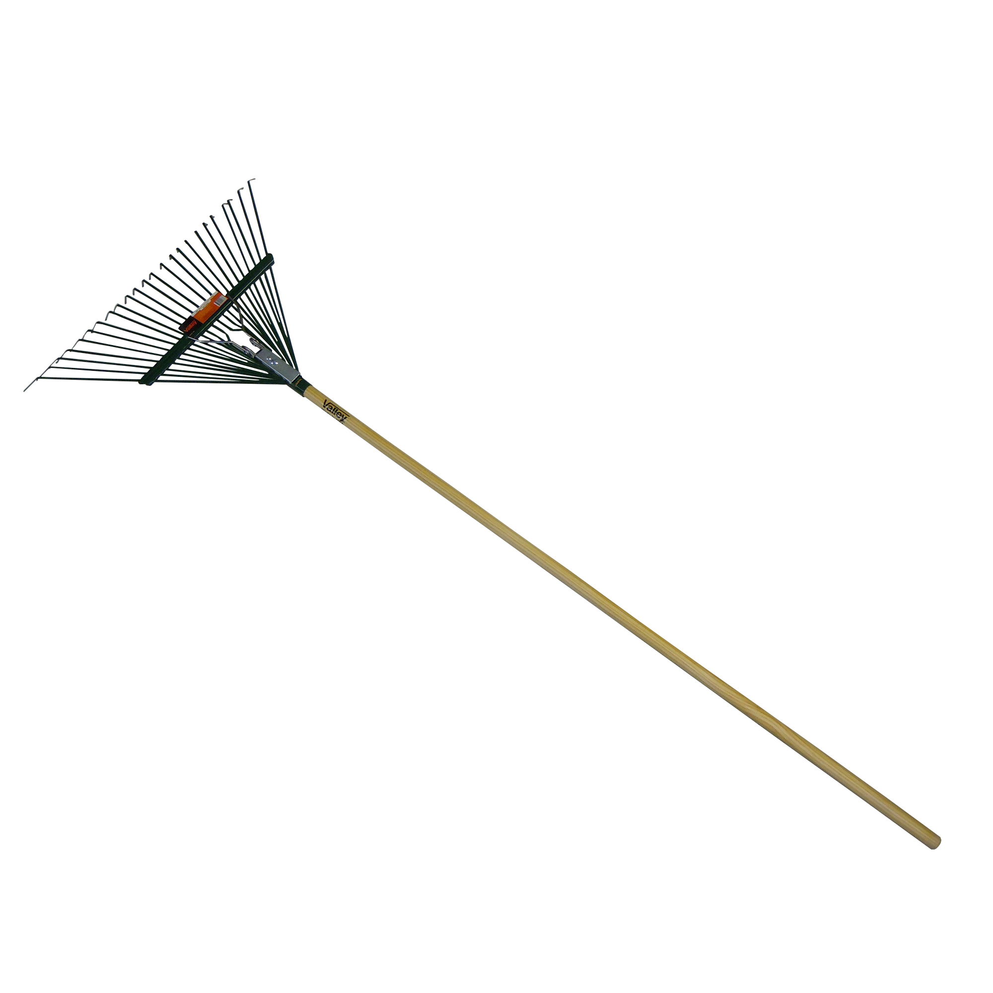 Spring reinforced heavy duty fan rake head[linebreak]Powder coated tines for corrosion resistance[linebreak]7/8″ X 54″ wood handle