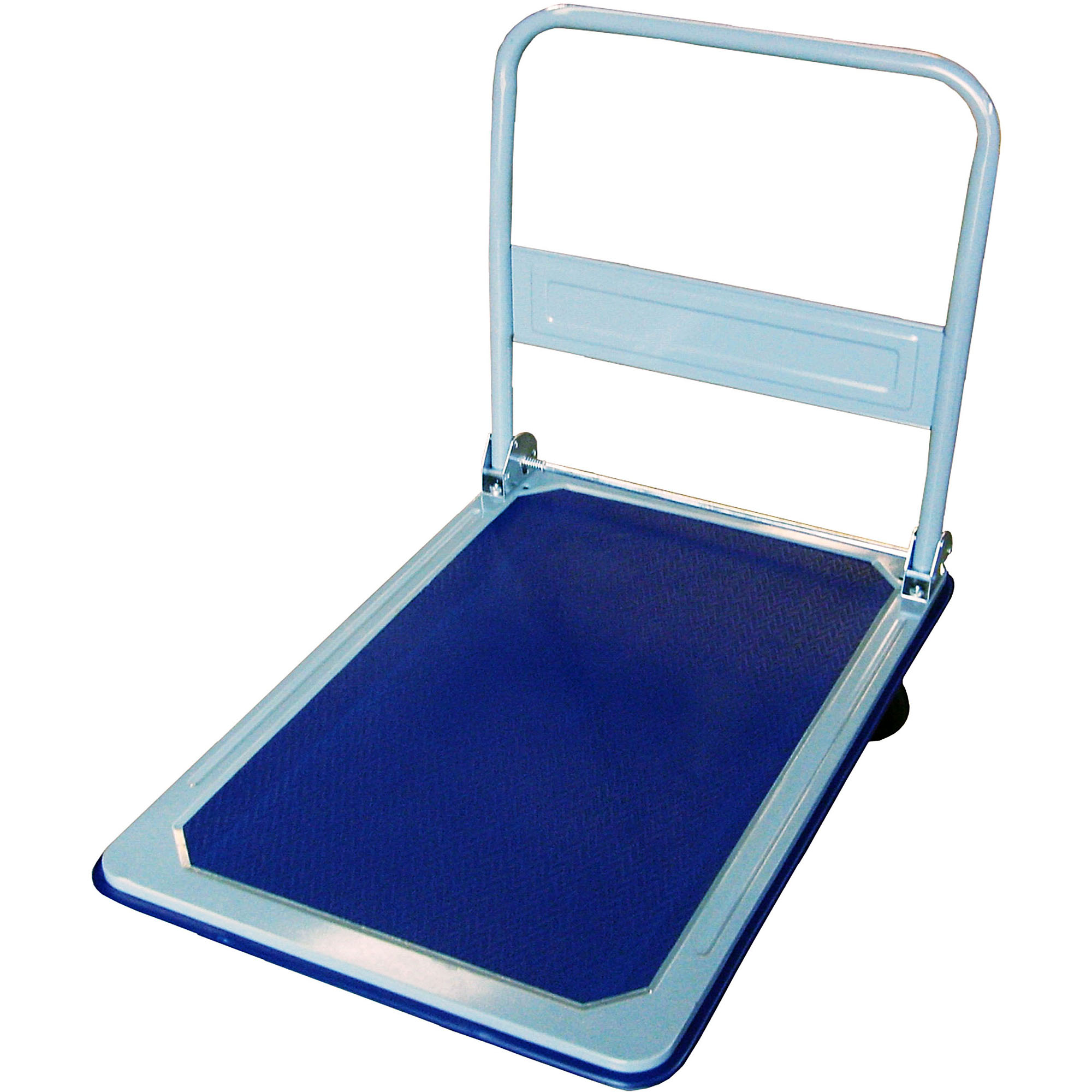 Dimensions:[linebreak]W = 23″ / 585mm[linebreak]L = 34″ / 865mm[linebreak]H = 34.8″ / 870mm[linebreak]Heavy steel tubing frame construction[linebreak]Heavy duty steel platform[linebreak]5″/125mm polyurethane caster wheels will not mar floors[linebreak]Great for moving loads in shops and warehouses[linebreak]Folds up for easy storage