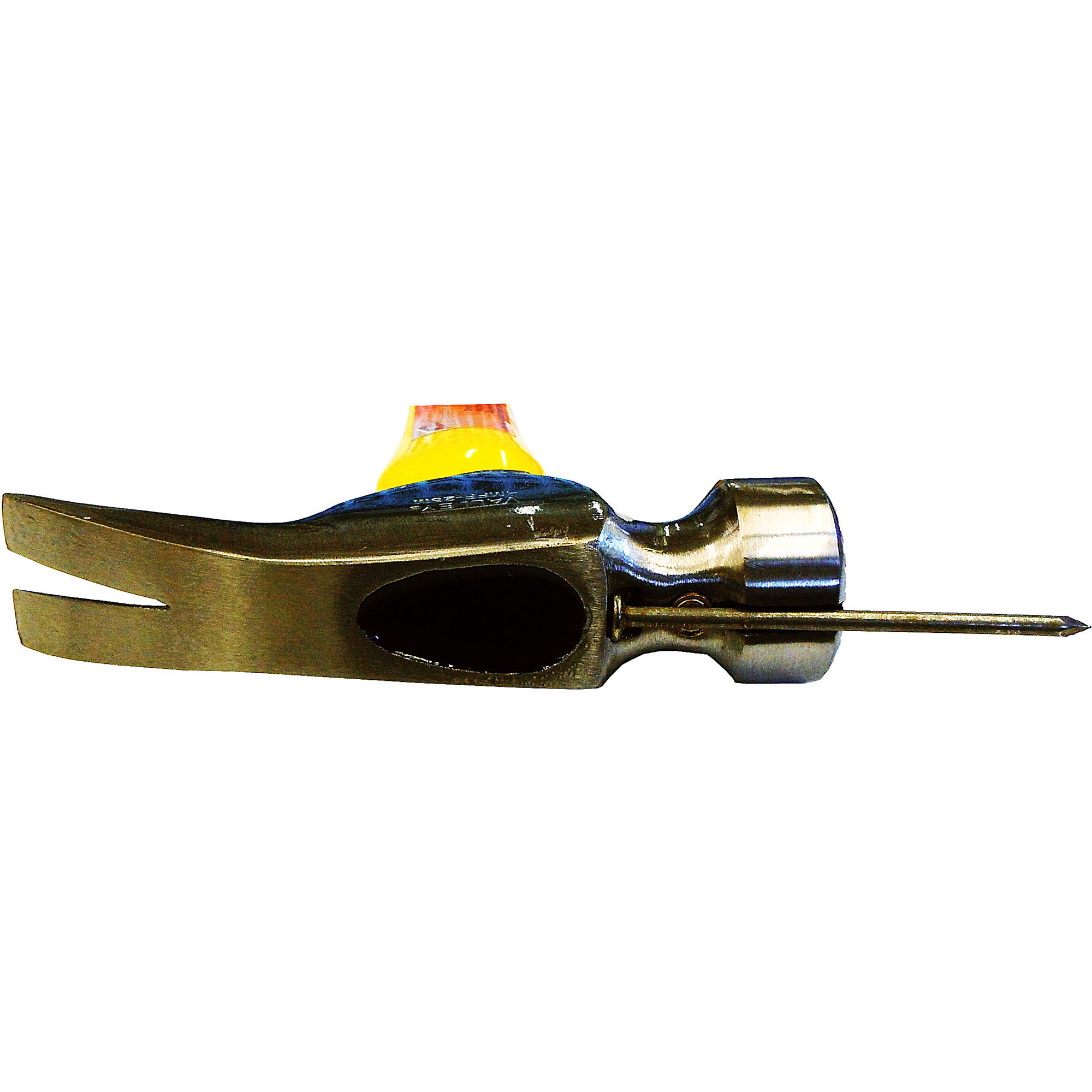 Drop forged and tempered head[linebreak]Heavy duty fiberglass handle[linebreak]Waffled face for farming nails[linebreak]1-1/2″ Striking Face[linebreak]Grip Length: 7-5/8″[linebreak]Claw Width: 1-1/4″[linebreak]Overall Length: 16-3/8″[linebreak]Nail Holder Length: 1-5/8″