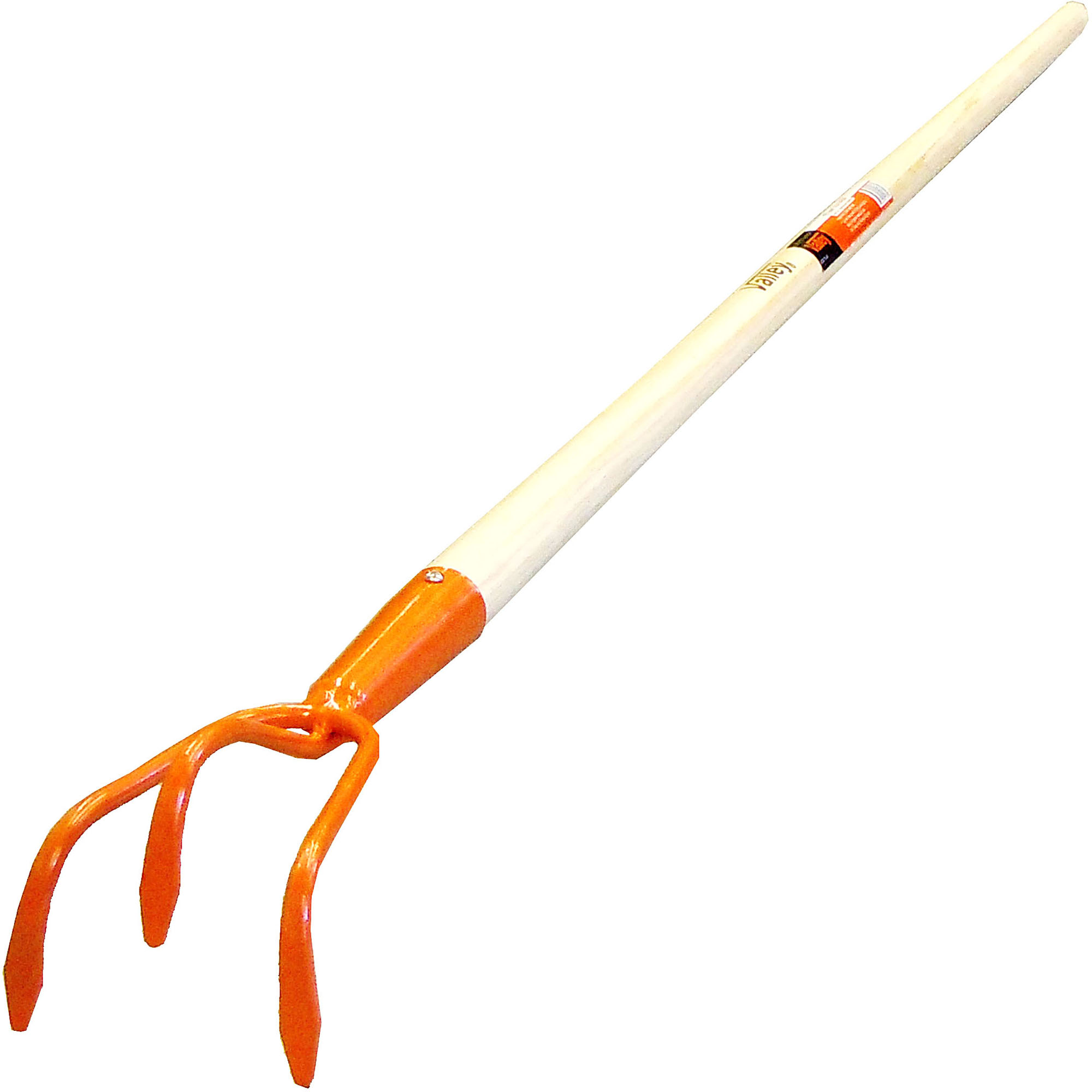 Heavy duty 3 tine steel head[linebreak]Curved tines great for tilling and digging. Deep into garden beds and soil[linebreak]1-1/8″ X 54″ hardwood handle[linebreak]Socket handle assembly allows for easy handle replacement