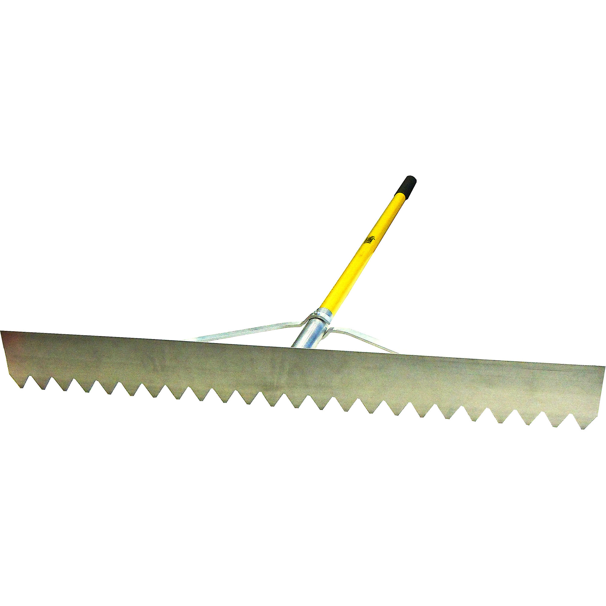 Made from extruded aircraft grade aluminum which is extraordinarily strong while lightweight[linebreak]Available in 36″/915mm width[linebreak]Triangular teeth with blunted tips are designed to be non-gouging for a smooth raking action to move asphalt or other paving materials[linebreak]Smooth back edge is used for finishing surfaces[linebreak]Flush rake head can be used to tamp down material[linebreak]Extra strong fiberglass handle with 0.125″/3mm wall thickness for extreme durability and a comfortable foam grip on top[linebreak]9″/225mm aluminum collar at the head/handle connection point reinforce the handle to prevent breaking during raking or tamping[linebreak]Handle is bolt braced to the head for a strong connection and to prevent head bend[linebreak]Asphalt lute rake is ideal for commercial projects such as smoothing and grading loose soil, asphalt, and other surfacing materials