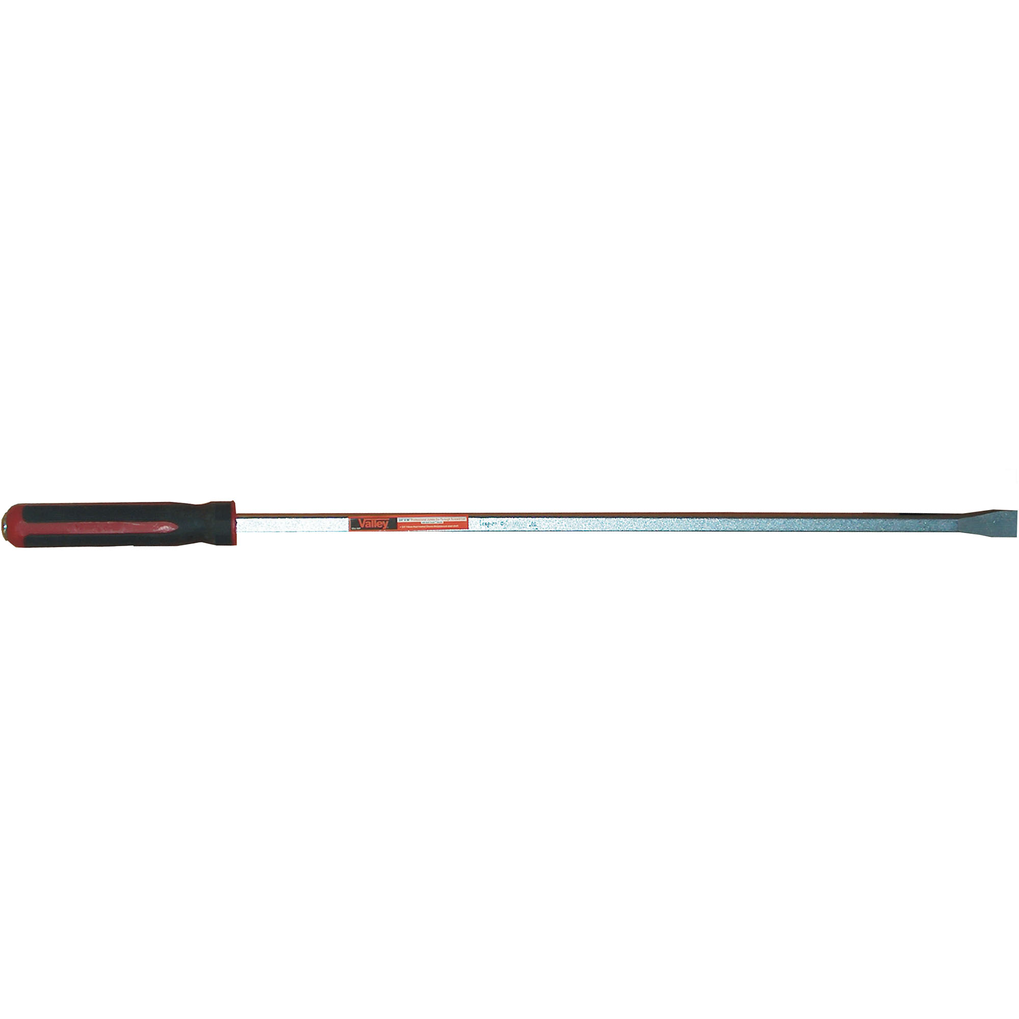Jumbo Screwdriver of Jumbo Pry Bar[linebreak]Heat treated Chrome Molybdenum 5/8” square steel shaft for[linebreak] unbeatable strength[linebreak]36” Overall length[linebreak]1” Wide sharpened chisel tip[linebreak]Straight shaft and tip[linebreak]Oversized 8” comfortable non-slip rubber grips[linebreak]Ideal for heavy lifting jobs, leverage in tight spots, and more