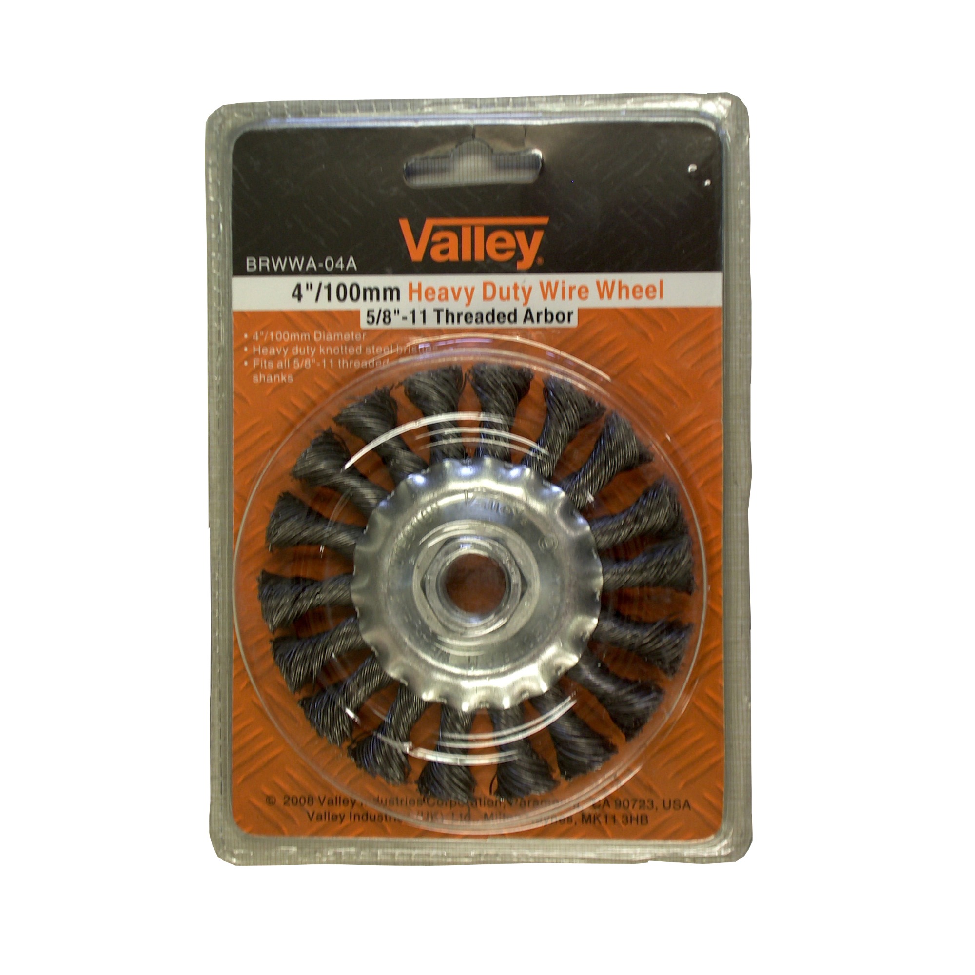4″/100mm Diameter[linebreak]Heavy duty knotted steel bristles[linebreak]Fits all 5/8″ – 11 threaded shanks