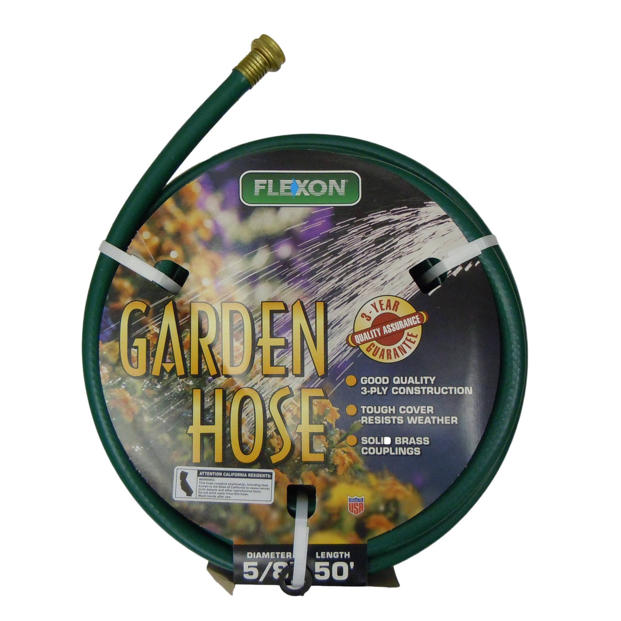 Good quality knitted – nylon – reinforcement 3-ply construction[linebreak]Tough, Weather – Resistant Vinyl Cover[linebreak]Solid Brass Full Flow Couplings 3/4” GHT (Garden Hose Thread)
