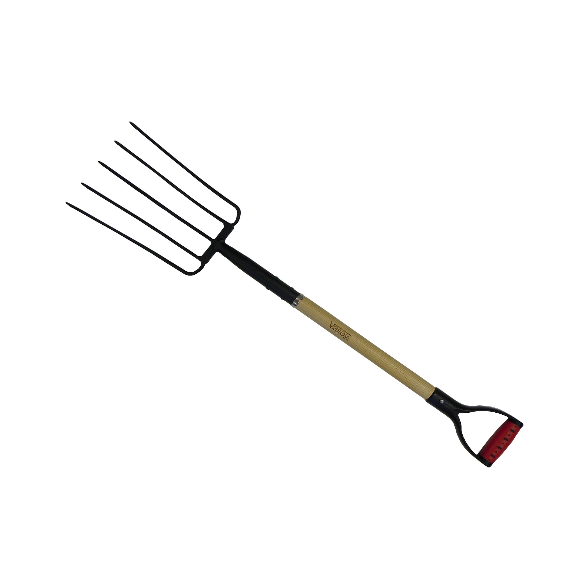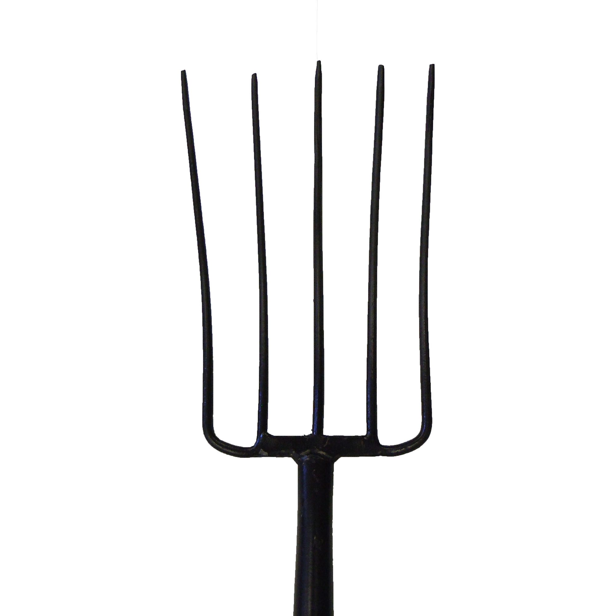 Heavy duty, tempered tool steel construction[linebreak] 5 Wide spaced oval tines to spread hay, leaves, or other agricultural material[linebreak] Oversized polyethylene D-grip with Soft-Touch™ grips