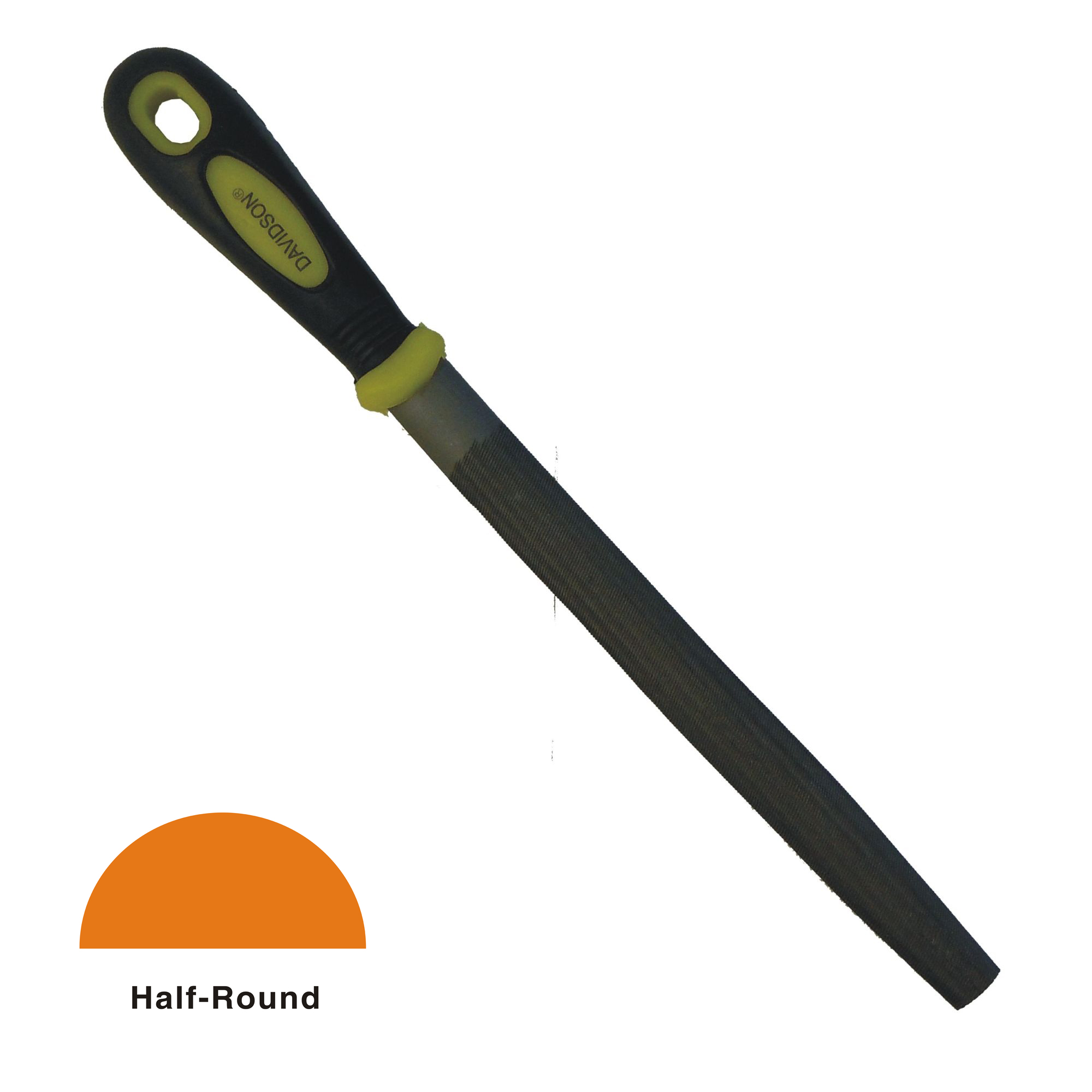 Made from T-12 hardened tool steel[linebreak]Smooth coarse half-round file [linebreak]Comfortable Soft-Touch™ poly grips handles