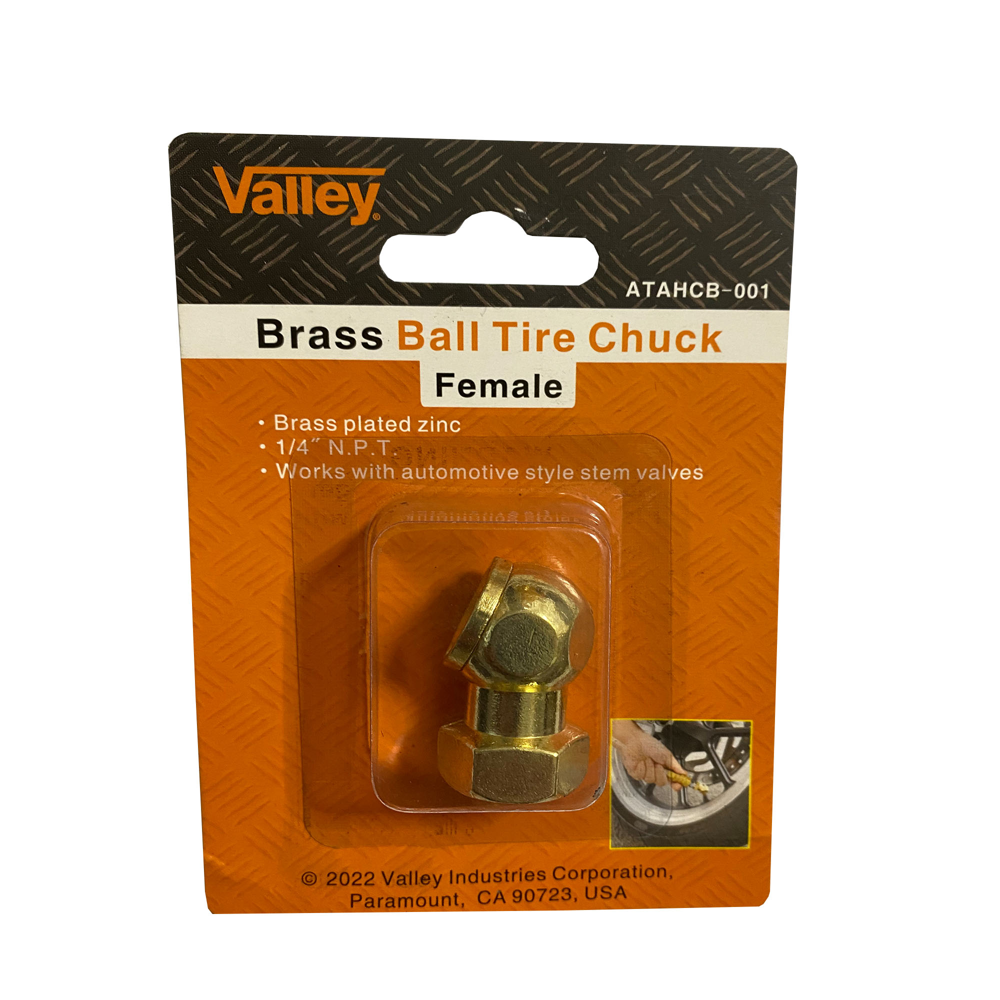 Brass plated zinc[linebreak]1/4″ N.P.T. [linebreak]Works with automotive style stem valves