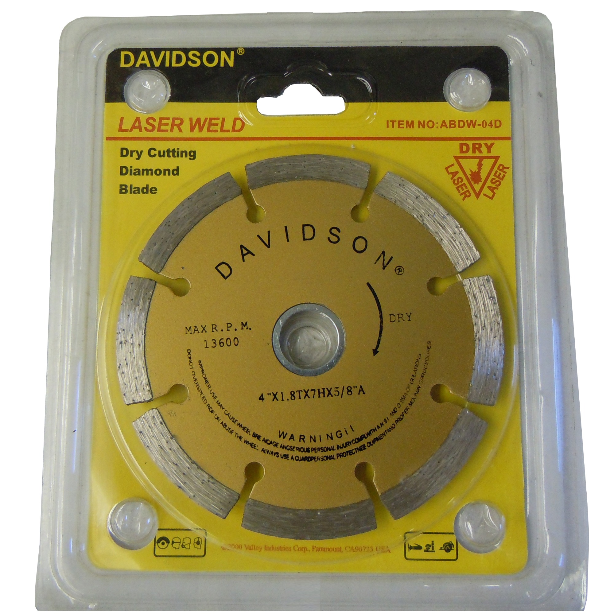 Max R.P.M. : 13600[linebreak]4″ D x 1.8T X 7H x 5/8″A[linebreak]Dry