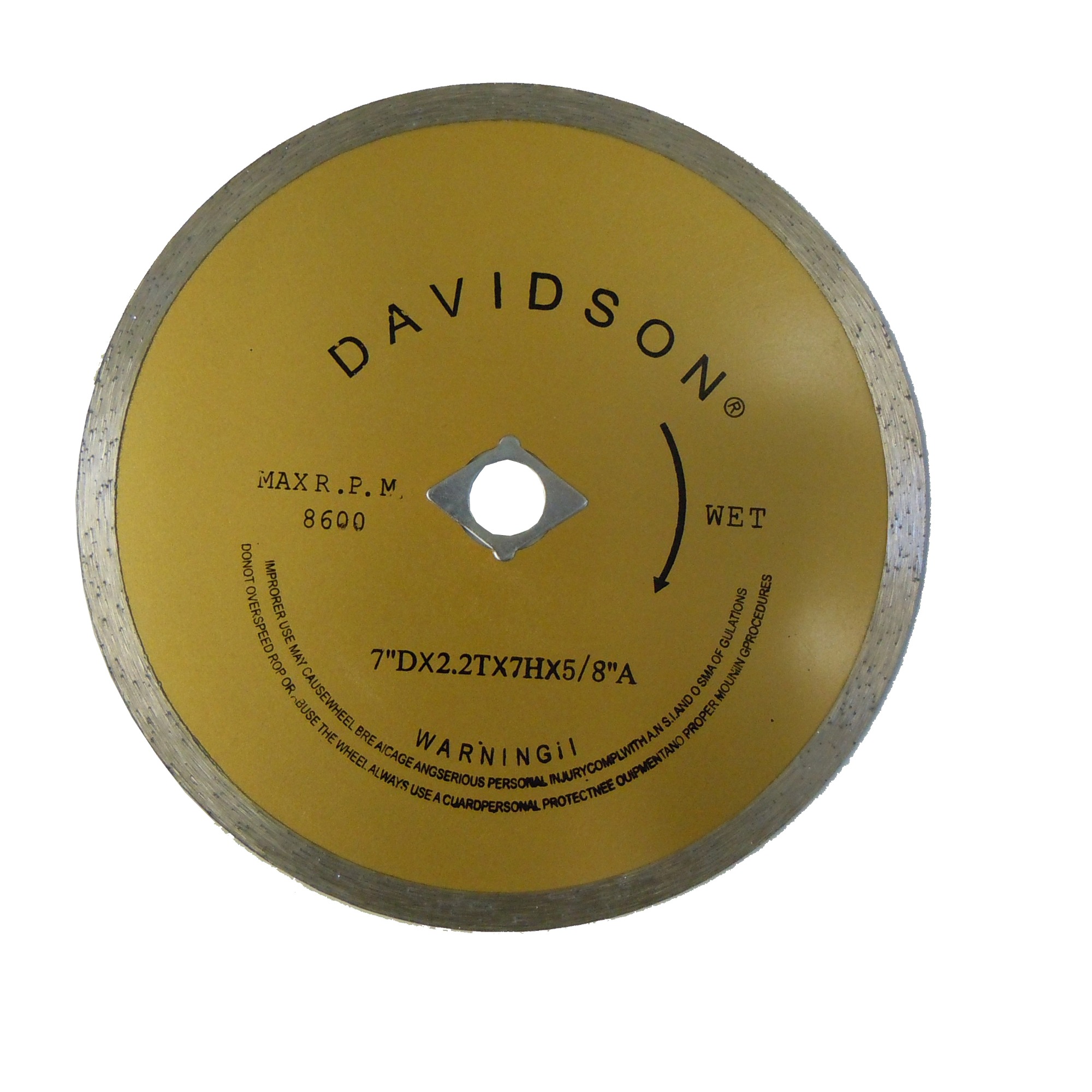 Max R.P.M. : 8600[linebreak]7″ D x 2.2T X 7H x 5/8″A[linebreak]Wet