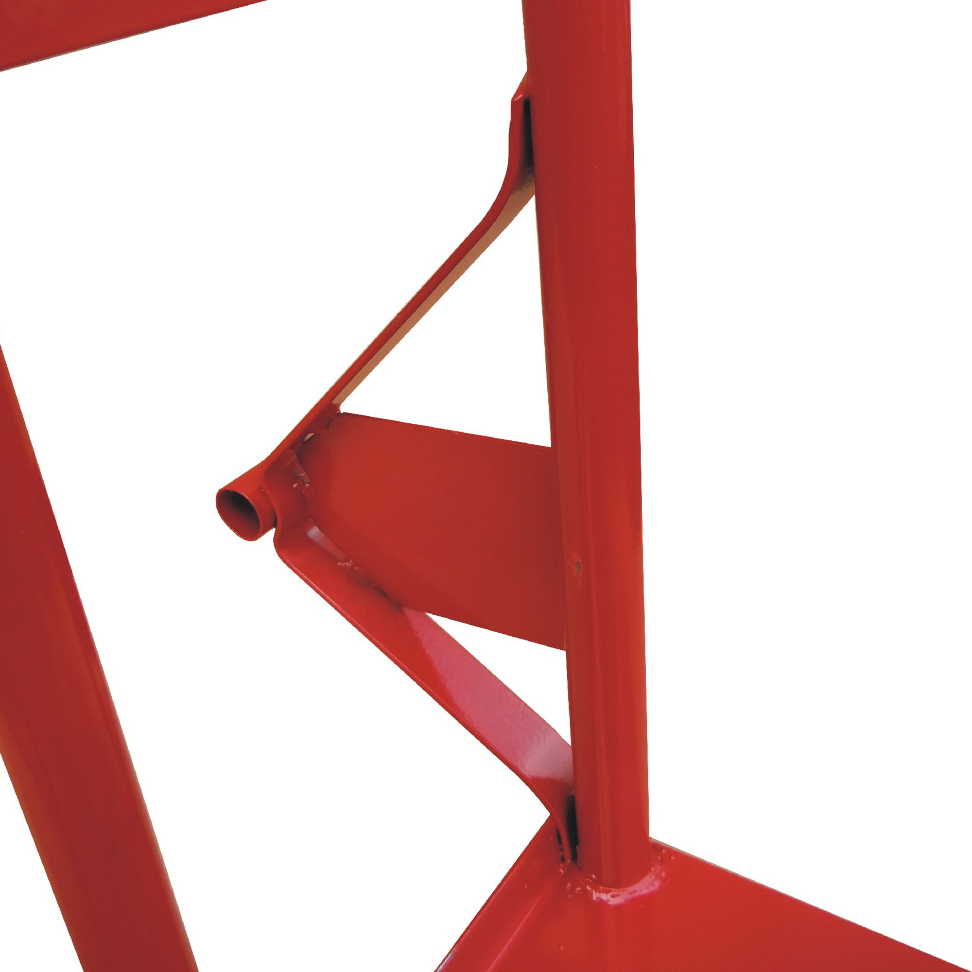 Heavy duty 1″/25mm diameter tubular steel frame[linebreak]Thicker beveled base plate to accommodate extreme use[linebreak] (13-3/4″ X 8-1/2″)[linebreak]Reinforced axle braces, center bar, and reinforcement ribs for large workloads[linebreak]Ideal for use in warehouses, delivery trucks, offices, farms and shops[linebreak]Comes with two 10″ rubber tires with knobby treads for traction[linebreak]Frame height: 51″/1300mm[linebreak]Frame width: 13.25″/340mm