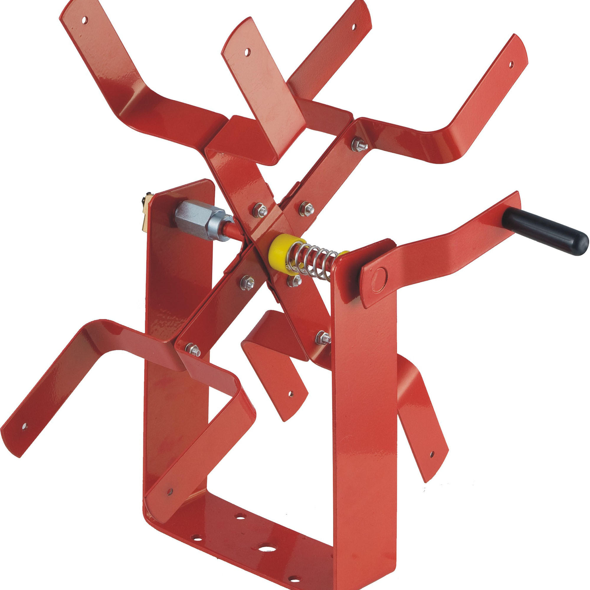 Heavy gauge steel construction for professional use[linebreak]Reel will hold 100 feet of 3/8″ diameter hose or 50 feet of 1/2″ diameter hose[linebreak]Hose reel mounts to truck beds, compressor frames, workbenches and walls[linebreak]Manual return allows users to retract and store air hoses neatly and without kinks[linebreak]Clear up shop floors of tripping hazards while lengthening the life span of the air hose[linebreak]Will fit any hose with 1/4″ fittings
