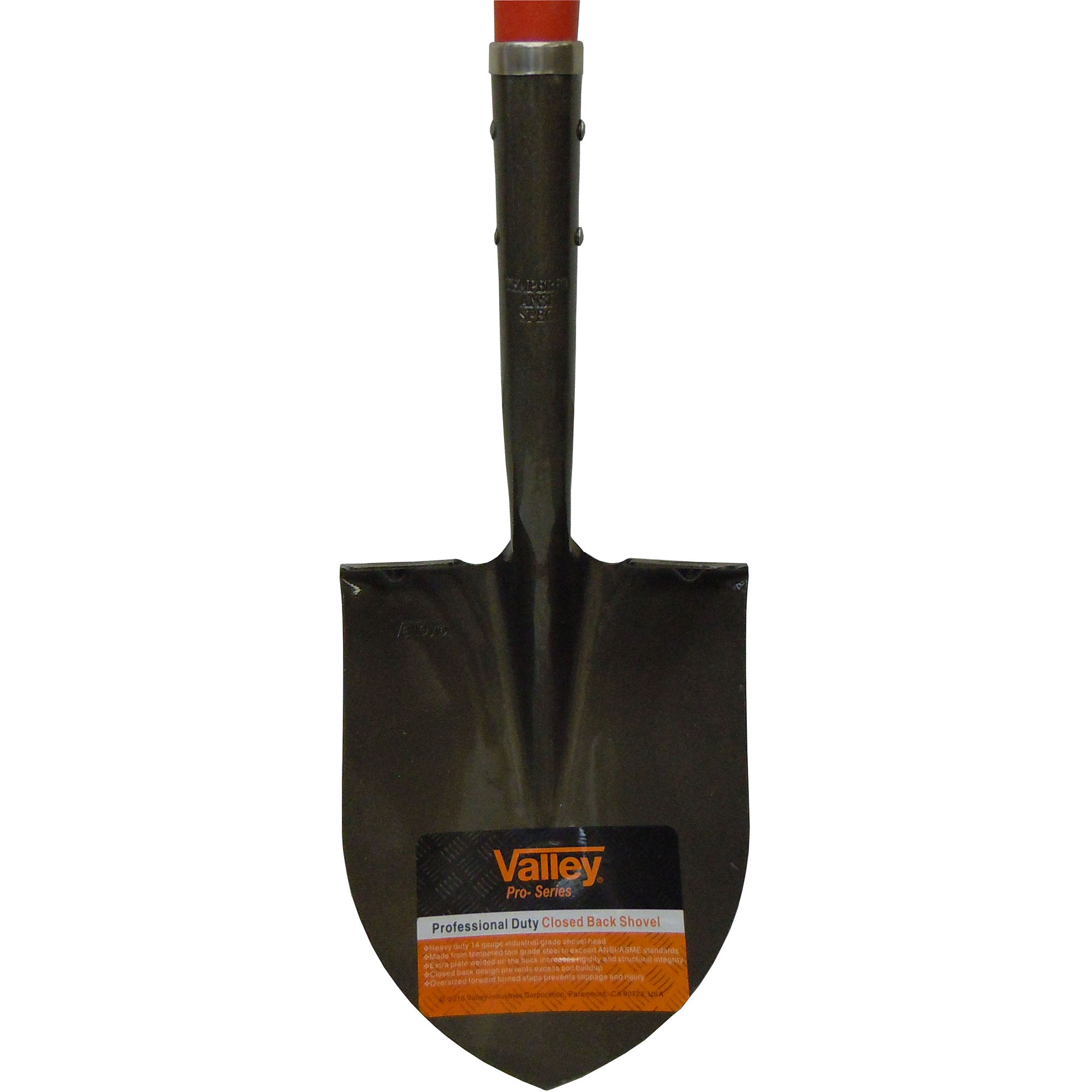 Heavy duty 14 gauge industrial grade shovel head[linebreak]Made from tempered tool grade steel to exceed ANSI/ASME standards[linebreak]Extra plate welded on the back increases rigidity and structural integrity[linebreak]Closed back design adds for additional strength as well as protects[linebreak] from mud and dirt build up[linebreak]Oversized toward turned steps prevents slippage and injury[linebreak]Double riveted[linebreak]Steel socket ring[linebreak]48” Fibercore™ handle – Solid Fiberglass with polyurethane jacket